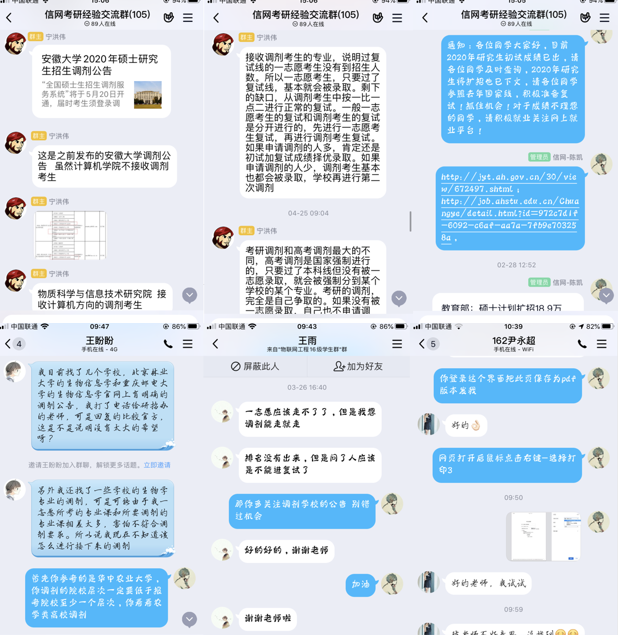线上,学院建立考研经验交流辅导群,邀请学院专业教师、新近教师、往届学长学姐等进群与考研学生进行交流,注重发挥考研成功毕业生辅导作用,力争把握考研促进工作的每个环节,为考研学生复试、调剂答疑解惑,提供宝贵建议。线下,针对学子政审材料、四六级证明、成绩单、学生证件、入伍批准书等材料,由辅导员帮忙整理取回并邮递学生,解决学生的后顾之忧。