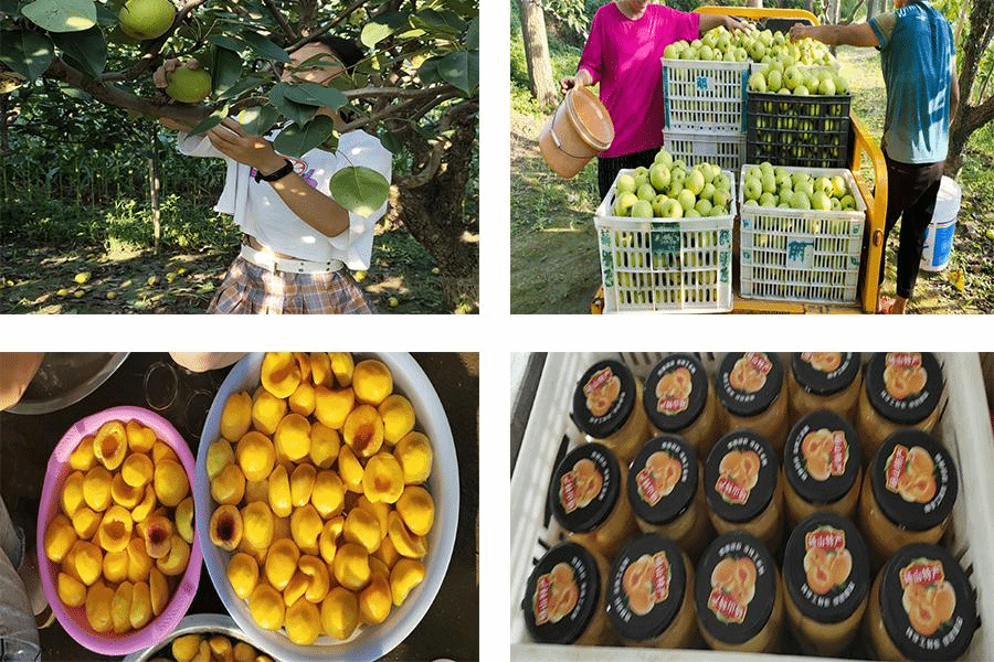 在“爱心助农”活动中,4名团队成员来到宿州市砀山县,不惧烈日,主动帮助当地果农采摘梨子。团队成员分工明确,他们有的摘梨子、有的将摘下的梨子放进筐中,加快了梨子的采摘效率,有效的减轻了果农的负担。在采摘过程中,团队成员学习了梨子的品种分类、梨子的种植技巧等相关知识。随后,团队成员跟随果农学习了黄桃罐头的制作技法,并自己动手制作了一批黄桃罐头。团队成员在与果农的交谈中得知,电商的发展对于农产品的经销起到了很大作用,现在果农可以通过“直播卖货”的方式将农产品发往全国各地,大大提高了农产品销售量,果农们的生活质量也在逐渐提高。