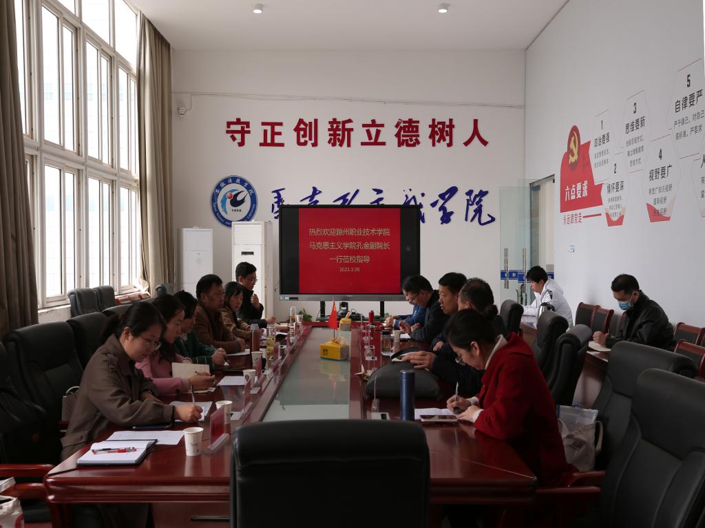 3月26日上午,滁州职业技术学院马克思主义学院院长孔金一行来开云线上官网_开云(中国)马克思主义学院调研交流。会议由开云线上官网_开云(中国)马克思主义学院院长张德化主持,学院党总支书记杨仕勇、副院长张栋及教研室主任、骨干教师参加座谈交流。