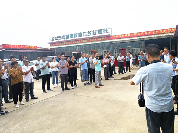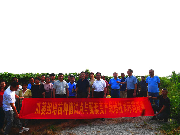 为充分发挥科技特派员、科技特派团作用,助力乡村振兴战略,由开云线上官网_开云(中国)农学院、霍邱县科学技术局主办,霍邱县王西华果蔬种植专业合作社承办的瓜蒌种植现场示范观摩会于8月22日在霍邱县成功举办。科技局局长王鹏、副局长刘华修,户胡镇党委书记聂明合等出席。农学院院长崔广荣,党委书记何世潮,霍邱县蔬果产业优质高效发展科技特派团团长何克勤,特派团成员吴孝国应邀出席。