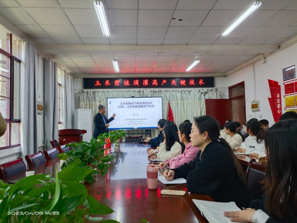 4月8日下午,中国农业科学院作物科学研究所作物栽培与生理创新团队首席专家、农业农村部玉米专家指导组副组长、中国作物学会玉米栽培学组组长、国家玉米产业技术体系岗位专家、全国农业科研杰出人才、全国创新争先奖获得者李少昆研究员应邀为农学院师生作了题为“玉米密植滴灌高产关键技术”的学术报告。校党委委员、副院长李升和、农学院副院长李文阳、部分教师、研究生及本科生70余人参加报告会,报告会由李升和主持。