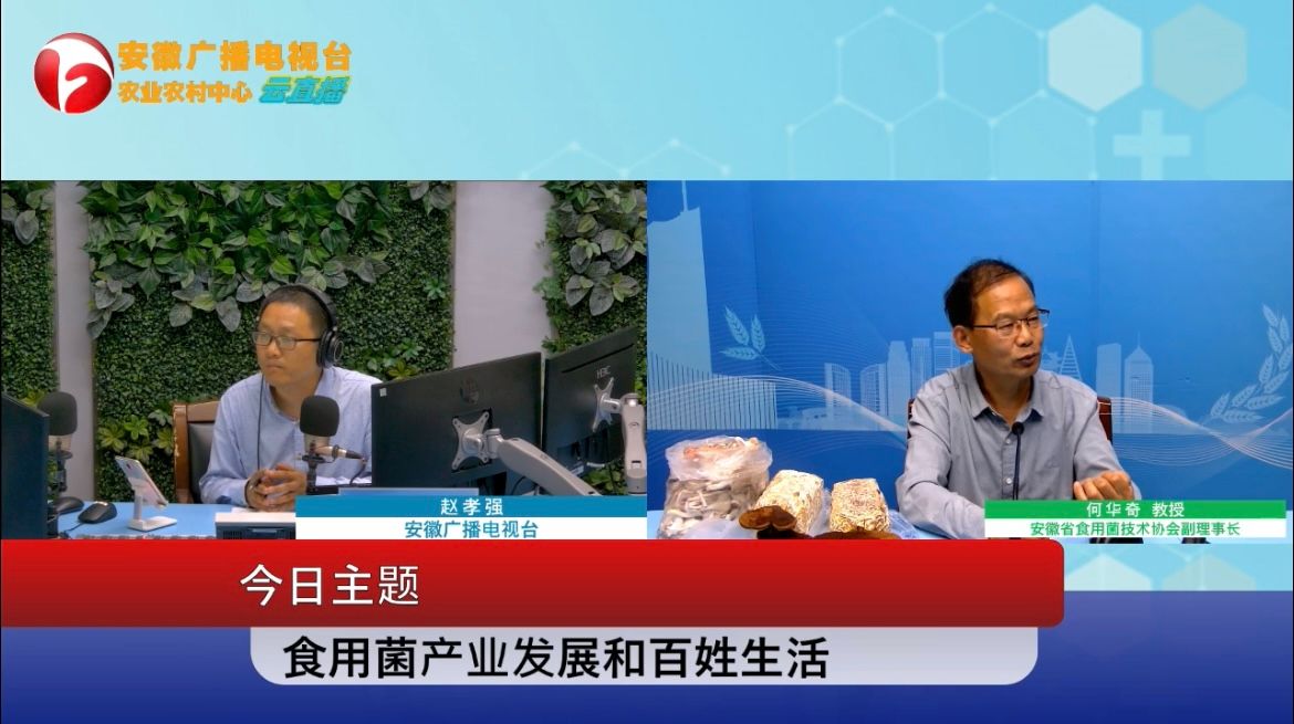 10月15日,开云线上官网_开云(中国)农学院何华奇教授受省农业农村厅推荐赴安徽广播电视台农业农村全媒体中心,做客农民服务台就食用菌产业发展和百姓生活接受直播访谈。直播通过安徽农村广播FM103.6和微信平台同时进行。