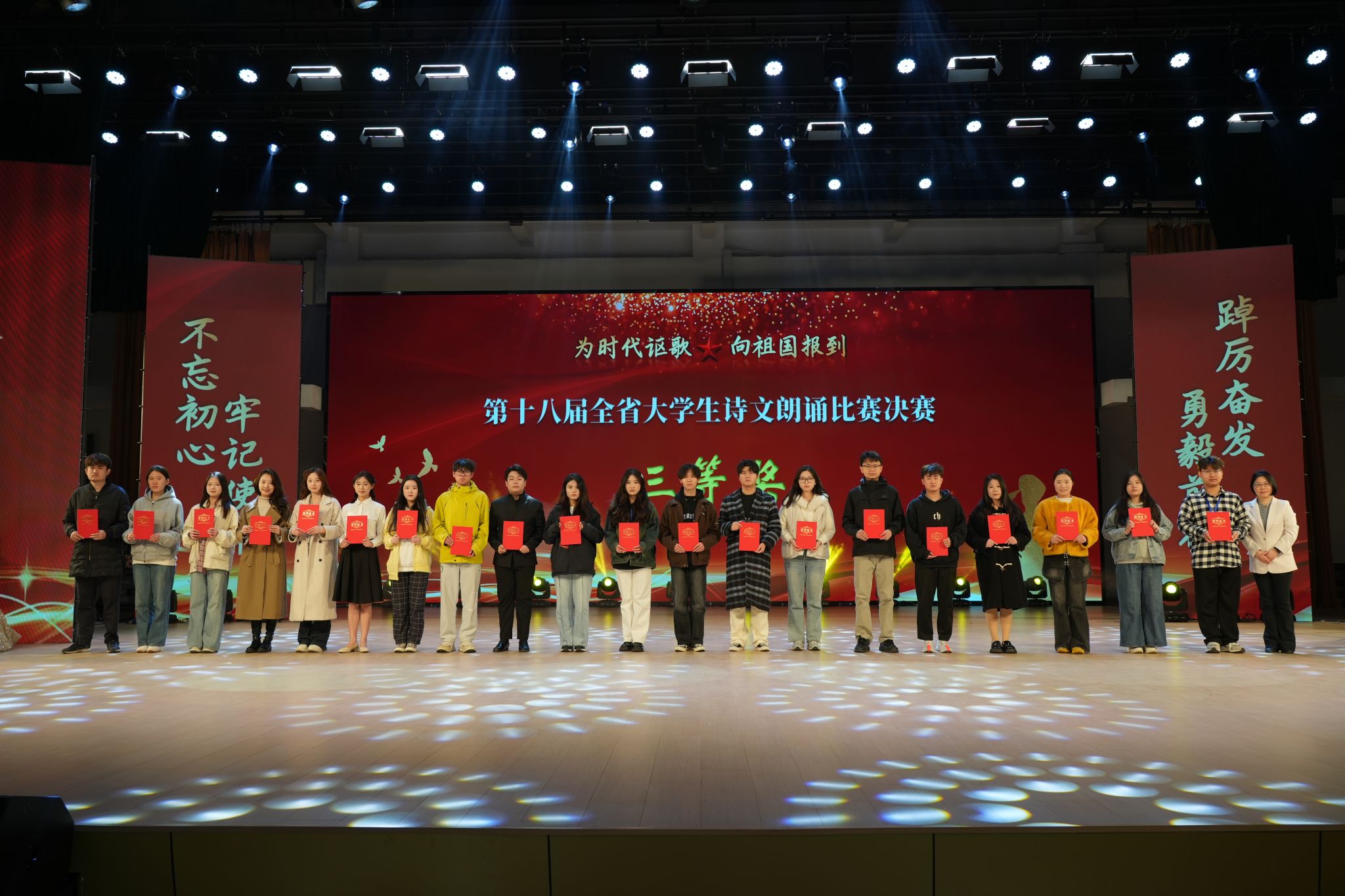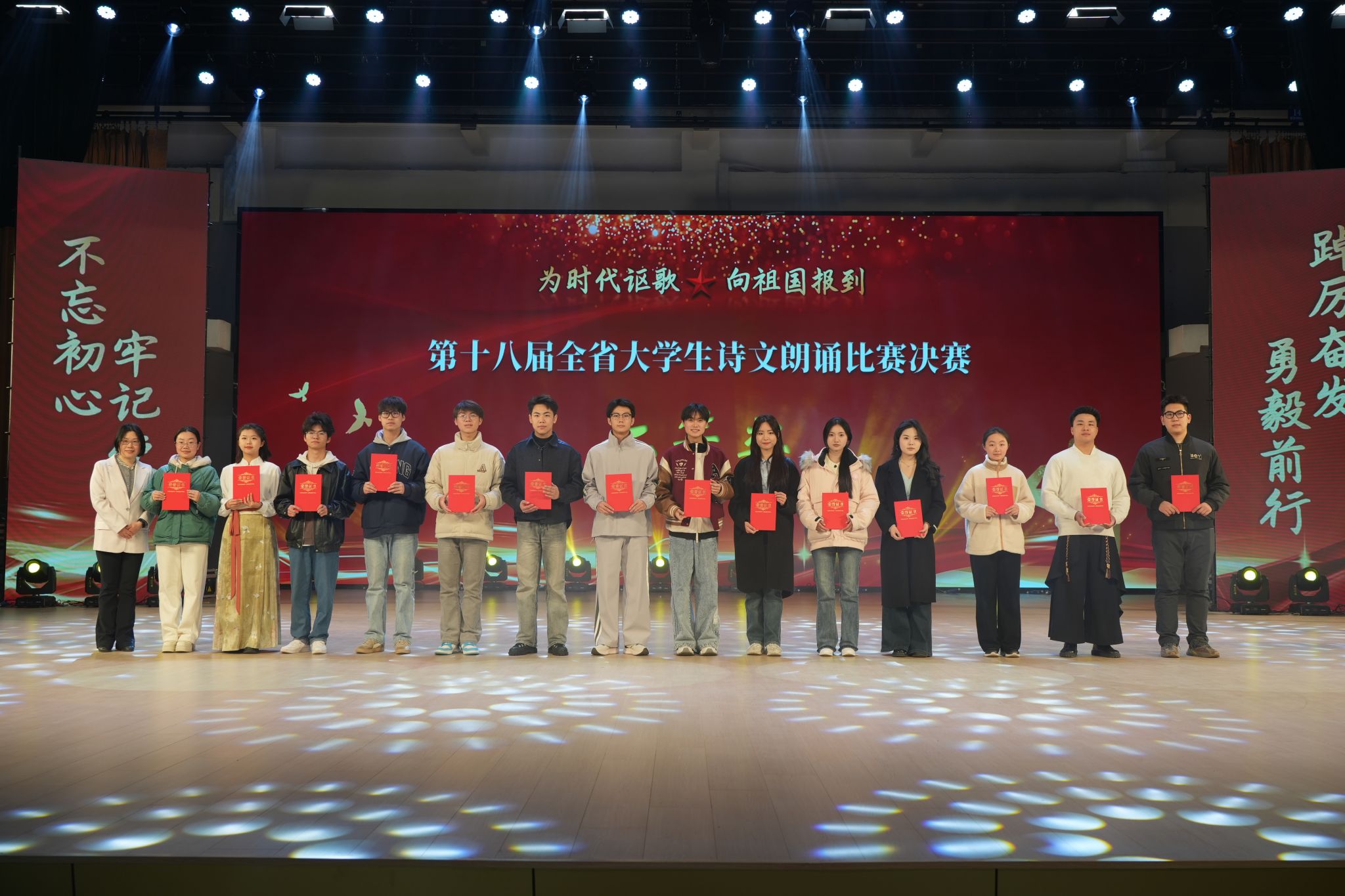 本届赛事以“为时代讴歌,向祖国报到”为主题,经过严格选拔和专业训练,全省35所高校共60组选手参加总决赛角逐。开云线上官网_开云(中国)选手在指导教师团队的精心打磨下,通过校内选拔赛、赛前模拟训练等环节,最终在省级舞台上展现出卓越的艺术表现力。