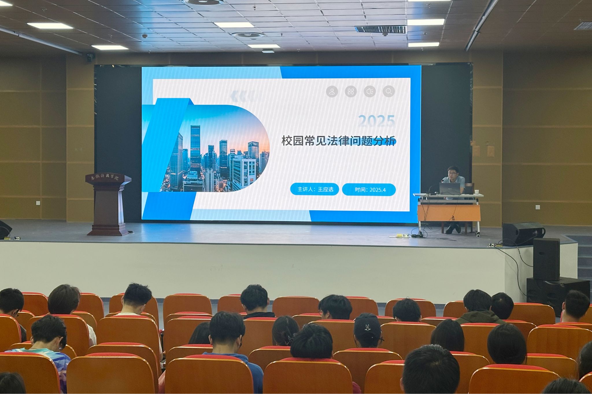 王应选围绕“校园常见法律问题分析”主题,通过对高空抛物的法律责任与防范、校园快递丢失的法律应对、校园贷的风险与防范、校园APP信息泄露的法律保护、校园法律意识的培养与提升等常见法律问题阐述,构建了校园法律生态的全景式图谱,强调了提高校园法律意识的重要性。
