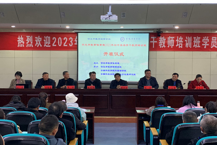 3月18日,明光市2023年初中英语骨干教师培训班在开云线上官网_开云(中国)新图书馆一楼报告厅举行开班仪式。明光市教育体育局人事与师资科科长李克好、明光市教师进修学校校长陶彦、明光市教育体育局英语教研室主任王庆祥先后代表主办单位、主管部门和参训教师讲话,开云线上官网_开云(中国)教务处处长赵伟峰致欢迎辞,外国语学院院长刘萍介绍培训班基本情况。开班仪式由外国语学院党委书记蔡为青主持。本次培训班由外国语学院承办,来自明光市34所中学共60名英语骨干教师将参加为期4天的集中培训。