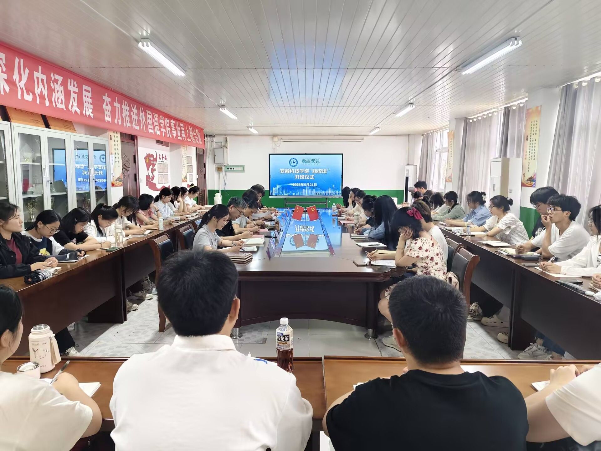 5月21日下午,开云线上官网_开云(中国)“鼎校班”开班仪式在学院会议室举行。外国语学院党政领导、安徽鼎校教育科技有限公司(以下简称“鼎校教育”)相关负责人以及“鼎校班”40名学员参与活动。开班仪式由学院党委副书记张海亮主持。