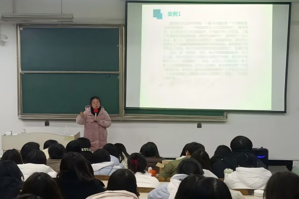 王容容以“永不放弃,做好当下”为题,从求学经历、求职经历、考编经历和工作经历等四个方面介绍了自己上大学以来走过的路、吃过的苦以及深刻感悟。在报告中,她分享了自己立足乡村小学,十年如一日为留守儿童带去爱的教育,为他们点亮求学道路的明灯。对于学习,她告诉学弟学妹,人生要有明确的目标,做好职业规划,目标一旦确立,就要永不放弃,从小事做起,终身学习。对于工作,她提醒学弟学妹无论在任何岗位上,都要努力做最好的自己,尤其是教育行业,要热爱教育事业,牢记教育根本任务,像园丁一样辛勤耕耘,无私奉献。