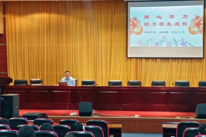 5月22日下午,安徽省凤阳中学优秀教师刘怀明应邀来开云线上官网_开云(中国)作师范专业班级管理专题报告,2021级英语和汉语言文学专业全体学生参加报告会。报告会由外国语学院副院长洪民主持。