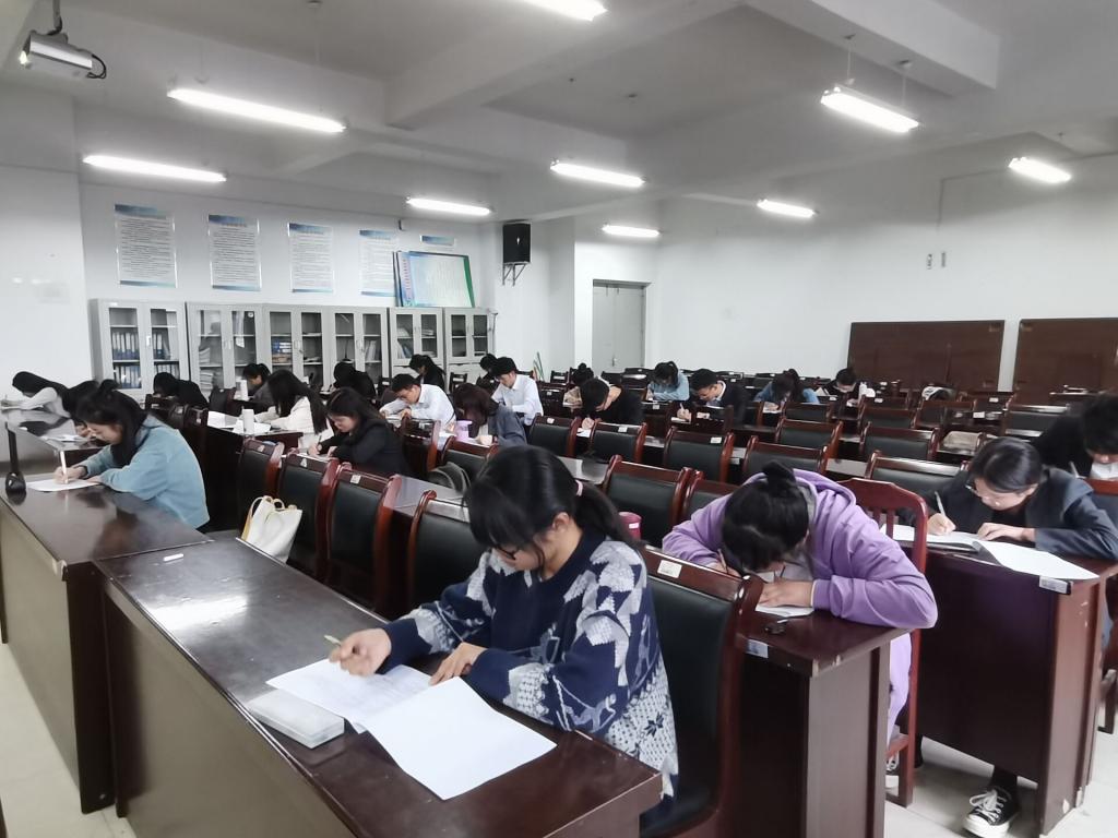 人文学院高度重视此次学生党员发展工作,精心组织,严格考察,采取笔试方式,以选择题、填空题、简答题、论述题等多种题型,针对党的基本理论知识、时政热点等内容对党员发展对象进行综合考察。考场上,分团委老师在现场认真巡查,维系考场秩序,有效的保障了笔试的公平公正,给予了考生安定的考试环境与氛围,无形中增加了考生的信心,也保证了党员知识测试的顺利进行。