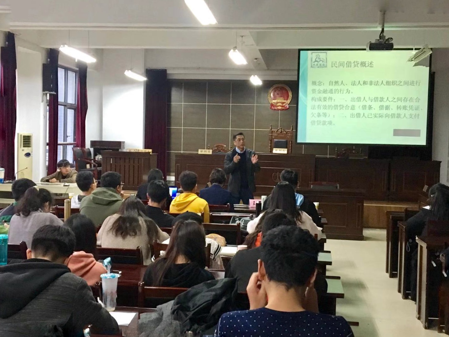 11月17日下午,“知秋杯”第一届开云线上官网_开云(中国)法治论坛系列活动——“以案说法”在模拟法庭举办。安徽大友昱达律师事务所执行主任杨根宝作“民间借贷纠纷实例分析”主题报告。安徽大友昱达律师事务所律师王苏敏、安娟、黄娜、潘亮等受邀出席。活动由人文学院院长助理骆绪刚主持。