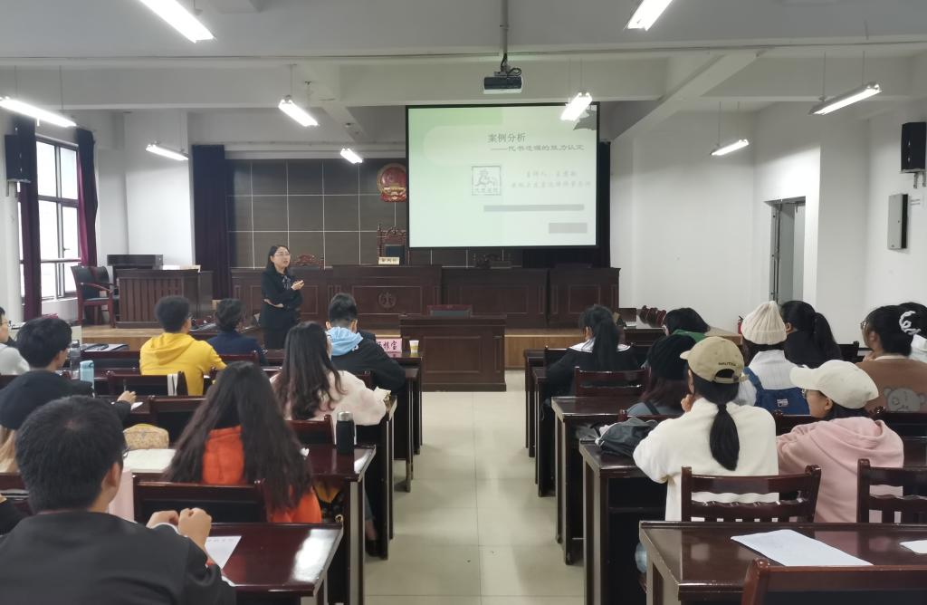 王苏敏结合工作经验对一例具有争议的代书遗嘱案例进行了讲解。她从人物关系、遗嘱内容、财产分配等方面出发,详细阐述了案例的全过程,并对其中所涉及的《继承法》内容与抚恤金标准进行了重点说明,引导学生对案例中代书遗嘱是否生效这一问题进行思考。王苏敏从律师代理案件的角度与个人情感角度对案件结果进行了总结,并对案件的争议之处进行了重点解释。王苏敏还与学生们进行了热烈的交流讨论,集中回答了学生们提出的问题。
