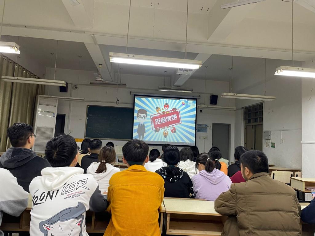 鲁冰冰首先介绍了习近平总书记的重要指示,要求大学生站在维护国家粮食安全、弘扬良好社会风尚的高度,认识到餐饮浪费行为的严重危害,同时明确提出坚决制止餐饮浪费行为的具体举措。然后各班级通过PPT和相关视频资料,向学生们展示当下人们在日常生活中的浪费情况,以此来宣传勤俭节约的美德,并且呼吁大家以身示范带动更多人践行勤俭节约新风尚,推动社会风气进一步好转。汉语言文学专业班助刘啸表示,“直面当下,光荣的历史使命、伟大的奋斗目标、复杂的内外环境,都呼唤我们要懂得保持艰苦朴素、勤俭节约的作风。弘扬中华民族传统美德,是每个人义不容辞的责任。”