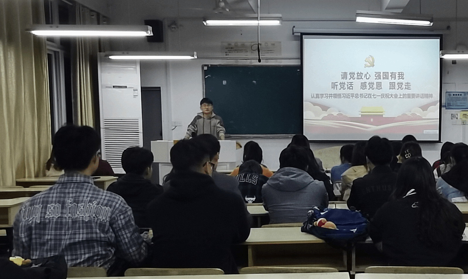 为积极响应习近平总书记对大学生的号召,增强当代大学生社会责任感和爱国情怀,人文学院于11月1日下午在求知楼A303教室开展“请党放心,强国有我”专题党课学习活动,学生会部长、各班级团支书参加。会议由学生会主席杜秦阳主持。