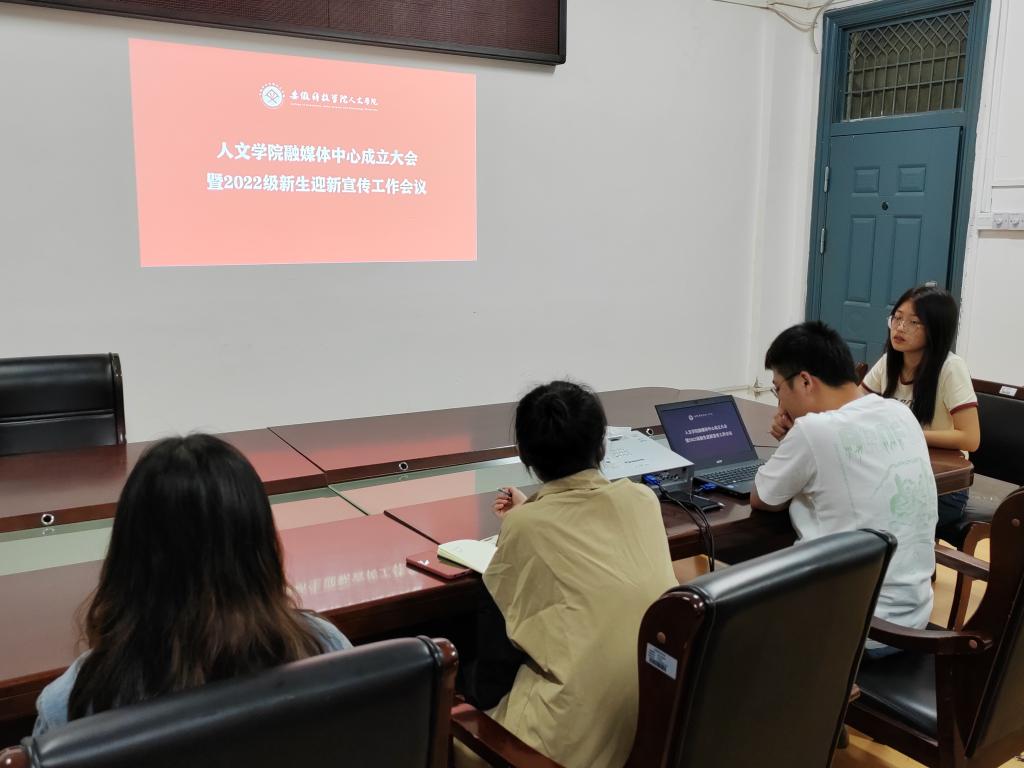 为推动人文学院宣传思想工作的发展,加强意识形态阵地建设,讲好人文故事,传播人文声音。9月15日晚,人文学院于学院会议室开展融媒体中心成立大会暨2022级新生迎新宣传工作会议。会议由人文学院辅导员方明旺主持,人文学院学生会、酿言工作室、易班工作站宣传部成员参与。