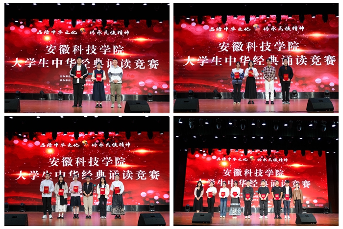 为贯彻《教育部等九部门关于开展第26届全国推广普通话宣传周活动的通知》的文件精神,助力推广普通话,发挥语言文字的浸润、助力作用,激发青年大学生奋斗精神与爱国情怀,9月25日下午,由教务处主办、人文学院承办的开云线上官网_开云(中国)大学生中华经典诵读竞赛决赛在大学生活动中心成功举行。蚌埠市广播电视台主持人吕彪,凤阳县融媒体中心新闻部编辑记者胡松、马克思主义学院教授王凤杰、学生处康佳蓉、人文学院专业课教师曹宋艳担任此次比赛评委。