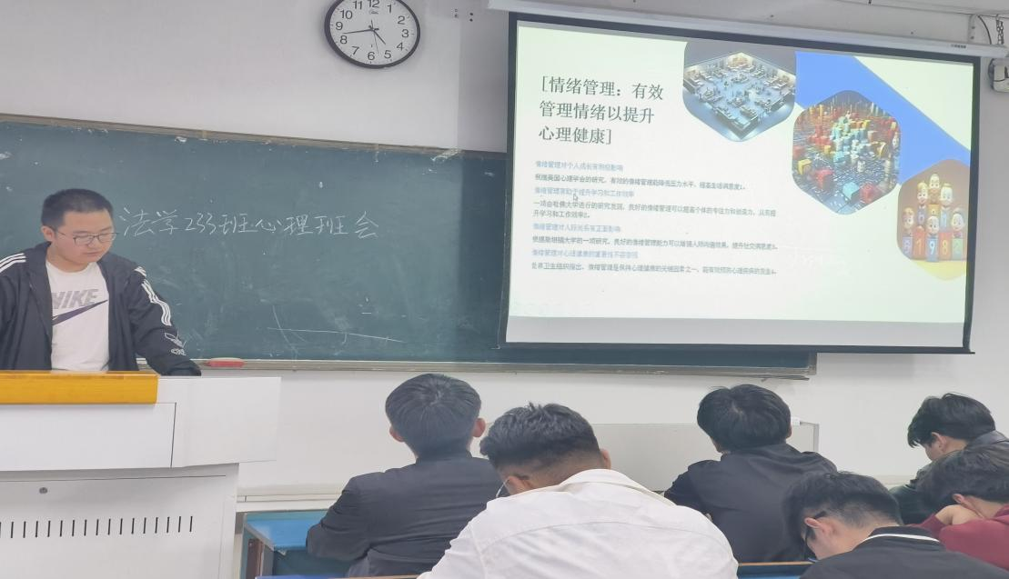 10月30日,23级各班心理委员组织开展了心理健康教育主题班会。心理委员通过讲述心理健康的重要性以及如何保持心理健康等内容,让同学们能够更加了解心理健康知识,增强心理健康意识以及保持心理健康状态。
