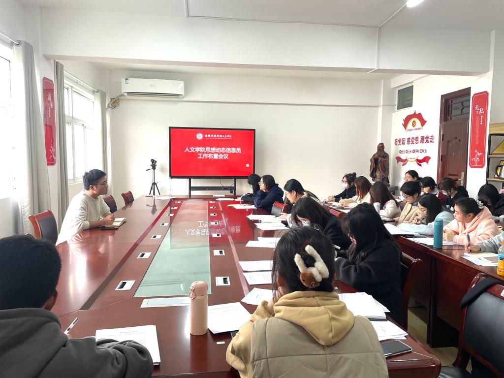 11月12日中午,人文学院思想动态信息员会议在学院会议室召开。专职辅导员方明旺、各班级思想动态信息员参加会议。