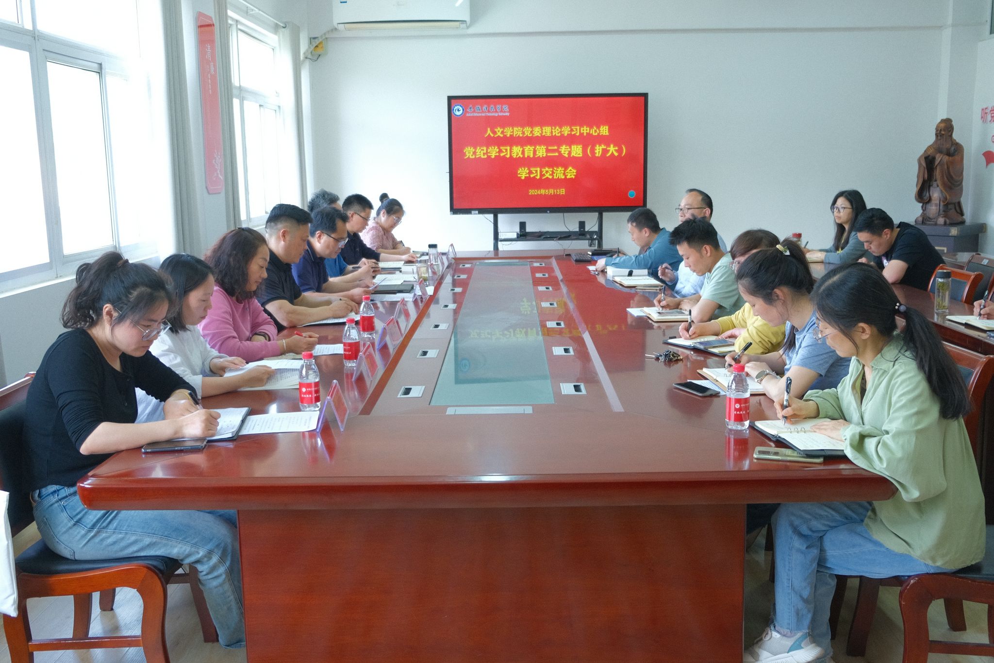 在集中学习阶段,李晓东首先领学了习近平总书记在2024年第9期《求是》杂志上发表的重要文章《组织动员亿万职工积极投身强国建设、民族复兴的伟大事业》和中央纪委国家监委网站5月9日刊载的评论文章《习近平总书记关于全面加强党的纪律建设的重要论述 推动党纪学习教育入脑入心走深走实》;正处级组织员张严政,党委委员、副院长牛永辉,云霁社区支部委员会委员史克芹,党委委员、中文系教工党支部书记和建伟,分别带领与会同志深入学习习近平总书记关于全面加强党的纪律建设的重要论述《重整行装再出发,以永远在路上的执着把全面从严治党引向深入》《一以贯之全面从严治党,强化对权力运行的制约和监督》《自我革命是我们党跳出历史周期率的第二个答案》《坚持不懈把全面从严治党向纵深推进》;党委副书记李沙娜,党委委员、法学系教工党支部书记张晓云逐章逐条领学研读《中国共产党纪律处分条例》分则部分的第6章(对违反政治纪律行为的处分)、第7章(对违反组织纪律行为的处分)共45条原文。