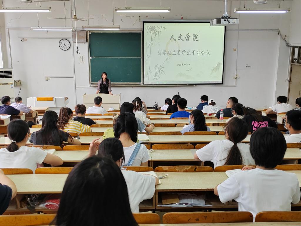 9月4日,人文学院于求A203召开新学期主要学生干部会议。学院党委副书记李沙娜、全体辅导员及班级主要班委参加。本次会议由辅导员焦雪松主持。