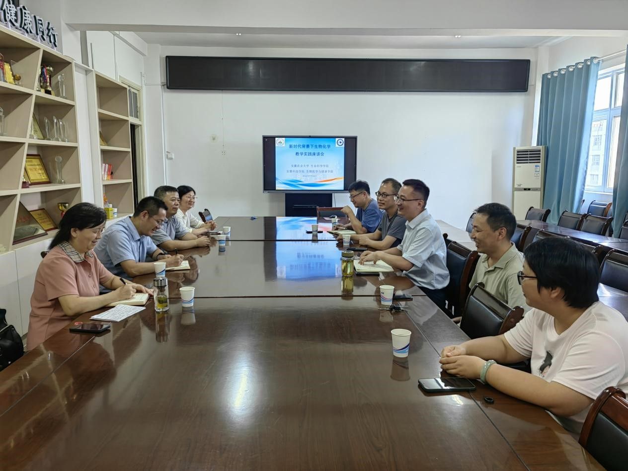 7月24日,安徽农业大学生命科学学院副院长顾龙江一行到生物医学与健康学院调研交流。调研交流重点围绕生物化学教学实践和生物与医药专业研究生培养等主题展开,学院部分教师参加座谈会。