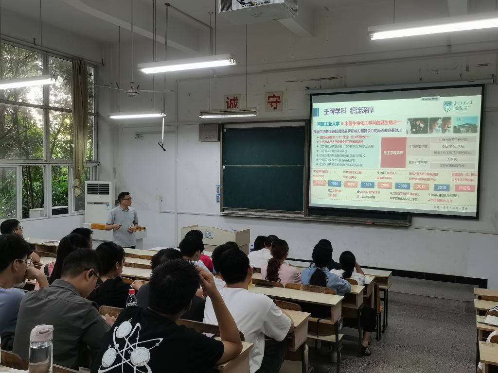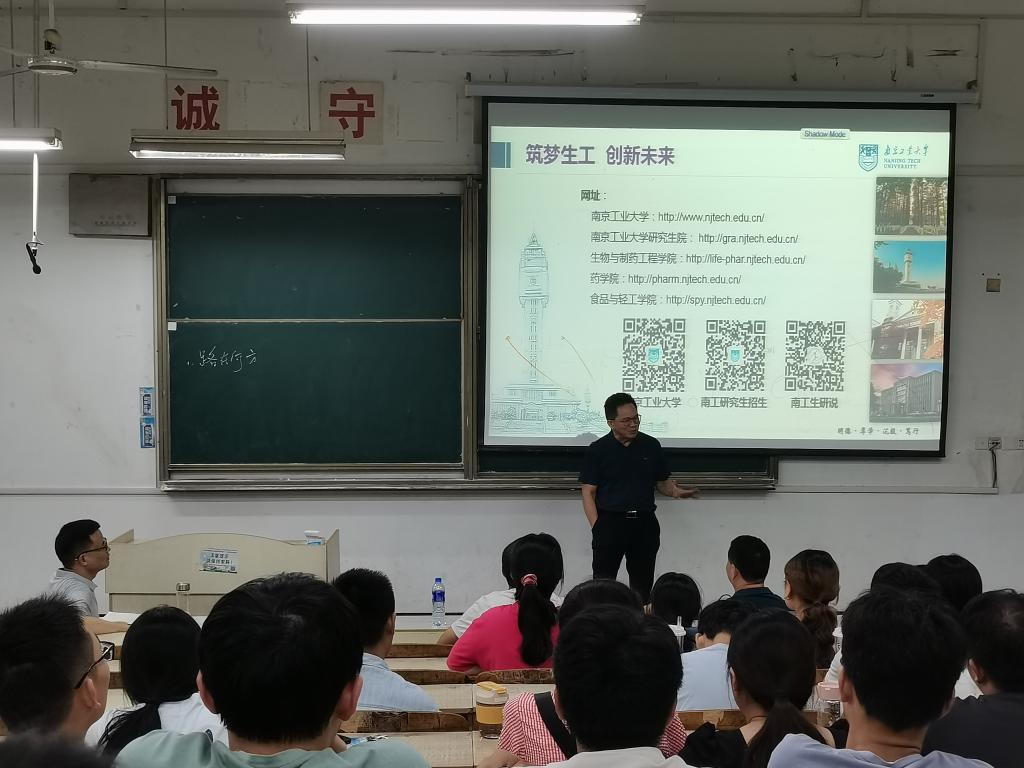 会上,周俊教授首先就南京工业大学生物与制药工程学院的发展现状、主要科研方向、课题项目以及人才培养等内容进行了详细介绍,突出讲解了其在生物化工领域学科专业、师资力量、科研平台等方面的优势,并对南京工业大学研究生招生的相关政策以及硕土点的基本情况进行了细致解读。此外,他也重点宣讲了同学们关心的研究生奖助政策、往年考试录取情况、求职去向等基本注意事项。最后,周俊教授简要描述了南京工业大学当前拥有的先进教学设施,并对有意报考的学子表示欢迎。