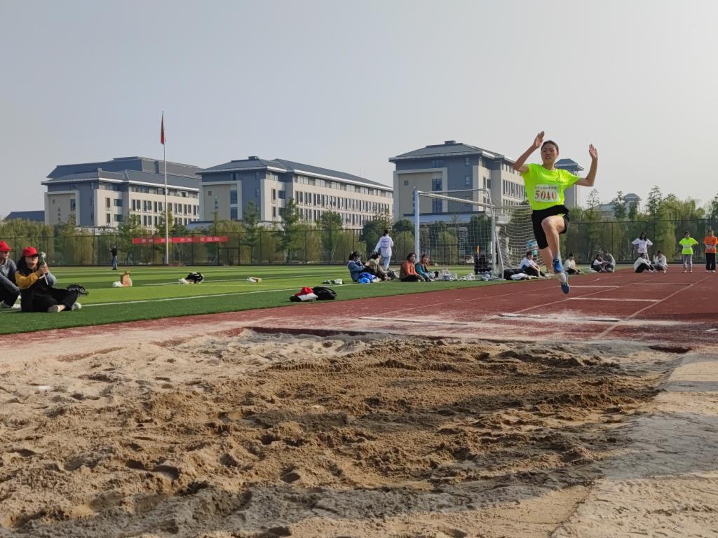 这是奋力的一跃,是谷杨阳对突破自我的追求。即使满身砂石也毫不在意地向前摔去,只为保证成绩。她就是来自生物科学(对口)201班的运动健将,不负众望成功夺得了本届运动会的女子跳远第一名,红颜不输儿郎!