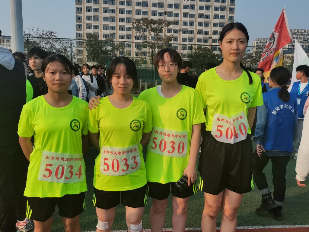 在4*400米女子接力比赛中,四位选手每一次的交接都是一次信念的传递,接过接力棒便不顾一切地跑下去。她们不给自己留一丝喘息的机会,坚定,执着,耐力与希望,在延伸的白色跑道中点点凝聚。她们借着东风,乘着观众的喝彩,超越一位又一位对手,最终冲向胜利的终点。她们是分别来自生物制药203班的刘奚雨、生物科学(对口)201班的谷杨阳、中药学201班的梁梦欣、生物制药213班的谢梦娣四位女将,以巾帼不让须眉的气势留下了赛场传奇。