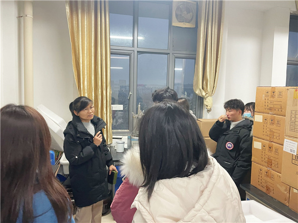 徐荣华于躬行楼8号楼1303实验室指着他小拇指上的伤痕,向同学们提醒到:“实验过程是非常危险的,一定要格外细心和注意。”徐荣华表示进入实验室的那一刻,同学们就要开始认真对待每一分每一秒的实验内容,有什么困难都可以向老师和同学寻求帮助,一定要注意实验室安全。面对徐荣华的关心和提醒,同学们纷纷表示会谨记在心。