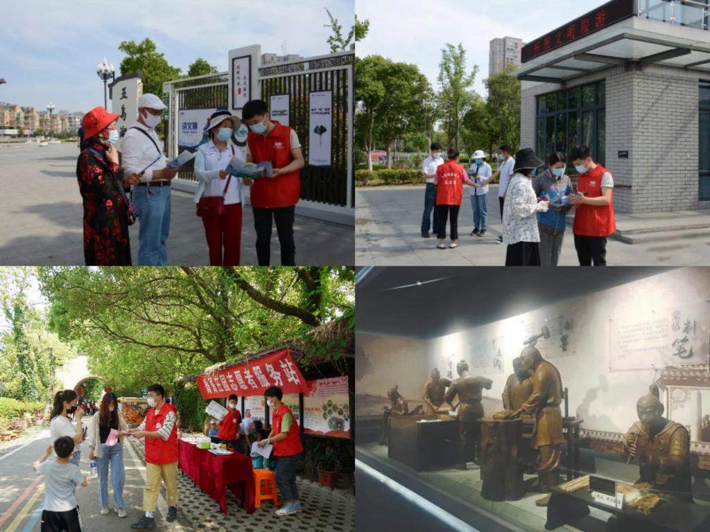 经过充足的线上准备,团队成员来到宣城市博物馆。博物馆整体外观呈蝴蝶展翅状,造型别致,色调清雅,与沿湖景观有机相融,是集文物收藏、陈列展览、宣传教育、科研交流等功能于一体的公共文化场馆。成员们走进馆内感受古代工匠高超的制作工艺,追溯历史的发展,学习宣城这座城市的历史文化。随后,团队成员到达宛陵湖,针对当地旅游节招募志愿者活动进行宣传,讲解了关于旅游节的文化和培训相关工作要求,为旅游节出一份力。