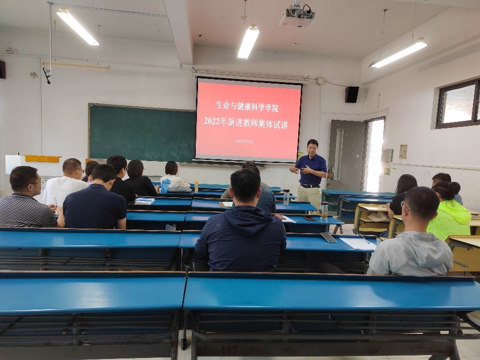 为促进新进青年教师提高教育教学水平,掌握课堂教学的基本要求,高质量地完成教学任务,9月3日,生命与健康科学学院在新知楼A111室开展了新进教师集体试讲活动。学院党委副书记、副院长(主持工作)孙玉军,党委委员、副院长钱立生,学院教学督导组成员、各教研室正副主任以及近三年新进教师参加了此次活动,试讲活动由孙玉军主持。