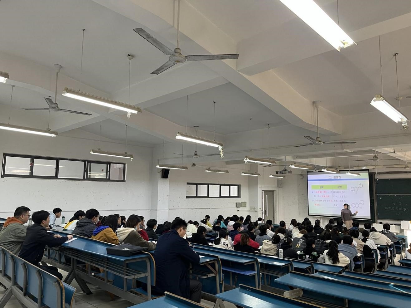 本次活动分两部分进行,首先由全国教学创新大赛安徽赛区一等奖、安徽省教坛新秀获得者、学院教学督导员汪雁博士进行示范教学活动,讲授内容为《天然药物化学》中生物碱的理化性质。课件内容图文并茂、制作精美、条理清晰。课堂上,汪雁老师不仅深入挖掘课程中所蕴含的“思政元素”,把思政育人点巧妙融入授课内容当中,还运用多种现代化教学手段贯穿整个教学环节,把课堂氛围营造的十分活跃,大大提高了学生学习的积极性。整个课堂,汪雁老师神采奕奕、声音洪亮、教态自然,取得了较好的教学效果。