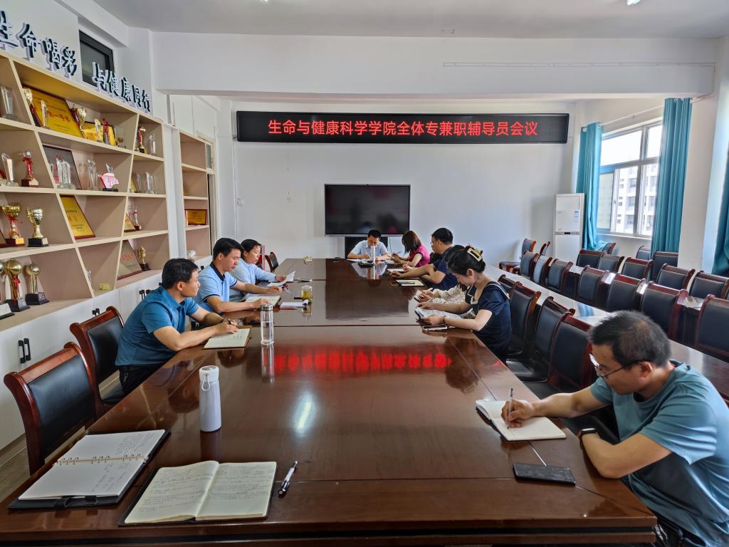 6月1日上午,生命与健康科学学院在学院会议室召开全体专兼职辅导员会议,学院党委书记詹学文,党委副书记、纪委书记彭丽萍,党委委员、副院长钱立生及全体专兼职辅导员参加会议,会议由詹学文主持。