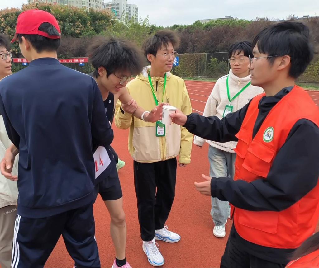 运动会当天,身着橙色马甲的志愿者们努力做好后勤保障工作。比赛前在缓冲带、跑道旁、检录处……总是能看到志愿者们热心地帮助运动员进行赛前热身,引导运动员到达正确地点,搀扶刚刚结束比赛的运动员并及时递水,为其补充水分。志愿者们一丝不苟地完成工作,他们的认真值得运动员所信赖,更是运动员坚实的后盾,帮助他们心无旁骛地投入比赛,全力以赴,为我院再创辉煌!(特约通讯员:王传林 摄影:汪东亮 尹银银 审核:彭丽萍)