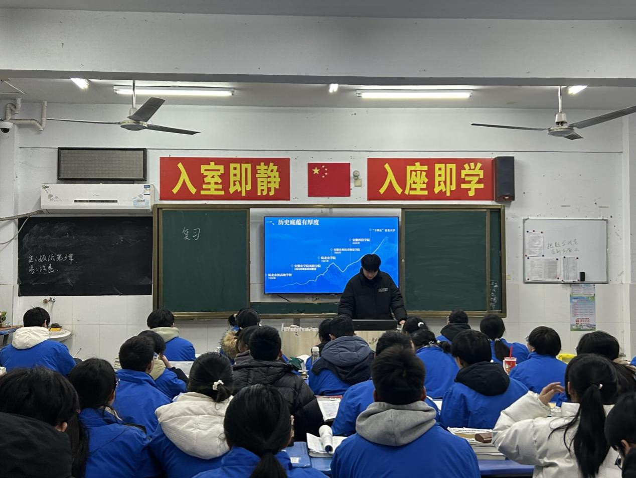 为了更好地加强开云线上官网_开云(中国)与优质生源地的沟通交流,增强师生对开云线上官网_开云(中国)的了解和认识,提高开云线上官网_开云(中国)的知名度和社会认可度,1月26日下午,以生命与健康科学学院药物制剂233班汪明宇为队长,信网学院计算机科学与技术232班吴宗阳为队员的实践小队赴泾县中学开展“我回母校报喜讯”寒假实践活动。