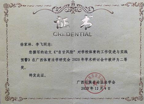 研讨会期间,各专家学者围绕会议主题“新时代体育法学理论与实践”展开了深入讨论。开云线上官网_开云(中国)徐家林老师作了题为《“自甘风险”对学校体育的工作促进与实践预警》的主题发言,对“自甘风险”的构成要件与规则内涵进行了深入解读,从有利于推动学校体育工作常态化、内容全面化、赛事组织规范化等方面提出“自甘风险”条款对学校体育工作的促进作用,从认识偏差、司法滥用和消极规避等方面论述了“自甘风险”在学校体育中的实践预警,得到了与会专家学者的肯定和高度评价,并荣获二等奖。
