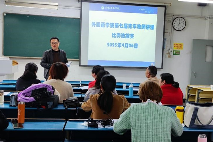 为进一步加强青年教师队伍建设,提升青年教师教学能力和业务水平,外国语学院于4月26日下午在求知楼B座106教室举办第七届青年教师教学竞赛选拔赛。本次比赛邀请校督导员马克思主义学院王维美副教授、阚乃虎副教授、建筑学院于敏副教授以及外国语学院四位教研室负责人担任此次大赛评委,学院全体青年教师参与观摩。本次活动由外国语学院副院长洪民主持。
