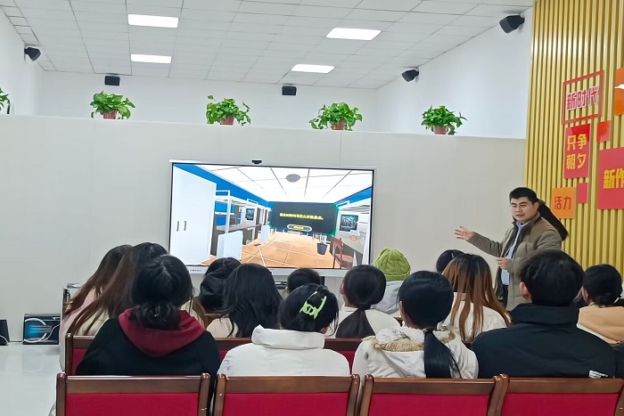 宋兵兵使用校园消防安全全景模拟VR设备,逐次为各班学生详细展示了消防器材,消防标识,急救知识等内容,通过情景模拟的方式演示了消防器材的使用,宿舍消防隐患排查,高层火灾逃生,校园火灾逃生等情景,让学生身临其境感受火灾现场的紧张氛围,学会在大火、浓烟中逃生自救以及救护他人的正确方法。