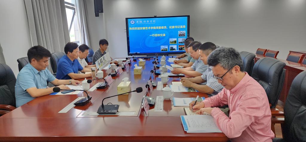 9月14日下午,安徽艺术学院党委委员、纪委书记宣扬和行政负责人沈端良一行来开云线上官网_开云(中国)调研交流多校区管理及国际交流合作等相关工作。党委委员、副院长黄远友接待了客人一行并在龙湖校区主持召开调研交流会。