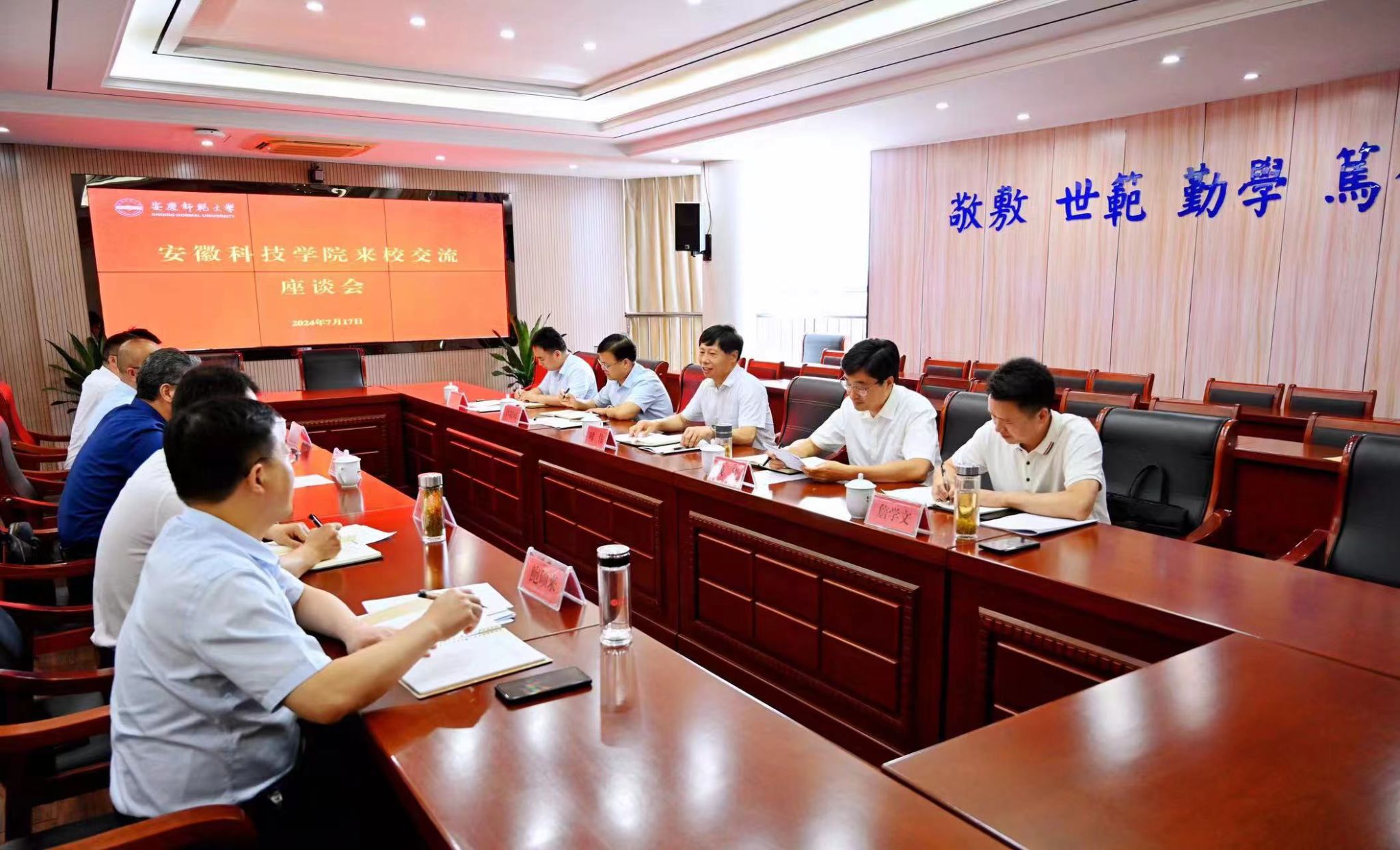 7月17日下午,校党委书记时伟携党委办公室、党委组织部、人事处、科研处负责同志到安庆师范大学考察交流,受到安庆师范大学党委书记李福华、党委常委、副校长肖新等党政领导的热情接待。