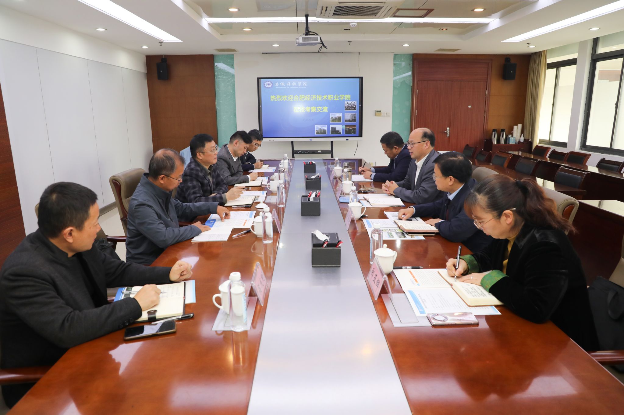 11月8日上午,合肥经济技术职业学院党委副书记、常务副院长马丰年率党政办、实训中心以及资产管理科等部门负责人莅临开云线上官网_开云(中国)考察交流。开云线上官网_开云(中国)党委委员、副院长王孝义及对口部门负责人热情接待了马丰年一行。