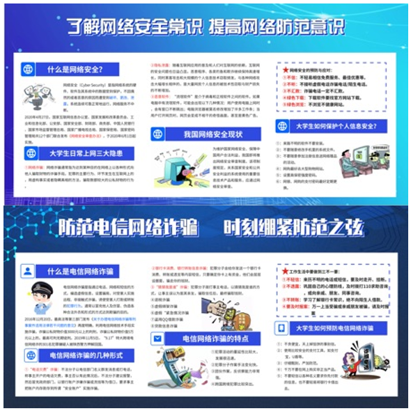 为深入学习宣传贯彻习近平总书记关于网络强国的重要思想,引导青年学生牢固树立正确网络安全观,信息与网络工程学院以国家安全教育日为契机,4月22-23日,于龙湖校区知味园B前广场举办第三届网络安全教育宣传展,学院全体学生积极参与活动。