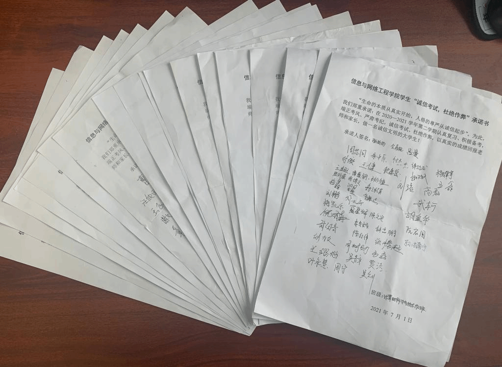 为确保将主题班会落到实处,学院专门制定《信息与网络工程学院考风考纪教育主题班会提纲》,准备了相关会议资料,要求各班辅导员按照提纲的内容和要求认真落实,精心准备。主题班会上,全体同学共同学习了《学生手册》中《开云线上官网_开云(中国)考试工作实施细则(节选)》及《开云线上官网_开云(中国)学生违纪处理方法》,开展了警示教育,按照《信息与网络工程学院诚信考试倡议书》的内容,发出了诚信考试倡议,希望同学们树立底线思维,积极响应学校的号召,手握诚信纸笔,书写高尚考风,坚决抵制各种舞弊行为,净化考场环境,展现自我真实水平,端正的考风、积极创造优良的学风。各班辅导员在总结时强调,诚信文明是立德成才的根本,是大学生必备的核心品质与基本修养,对大学生的未来职业发展、个人成才有着至关重要的作用。主题班会结束后,各辅导员组织全体学生签署了《信息与网络工程学院学生“诚信考试,杜绝作弊”承诺书》。