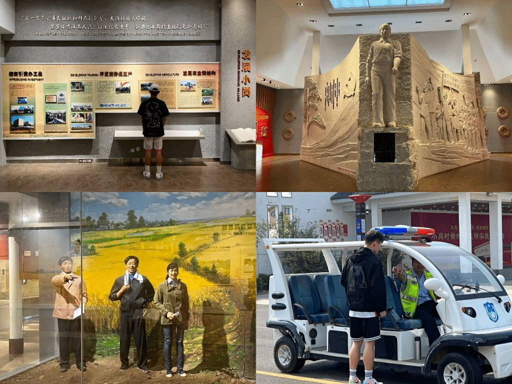 在此次调研过程中,队员们追寻习近平总书记考察小岗村时走过的足迹,参观了纪念馆,访谈改革亲历者等。团队成员首先来到大包干纪念馆,聆听了馆内讲解员对于小岗村的详细介绍,了解了大包干带头人和当地村民讲述“大包干”故事。接着来到了一九七八生态农业园,在与工作人员的交谈中,了解到生态园内江苏长江润发集团公司与小岗村东西联动、携手共进,并通过对葡萄的示范栽培,引导小岗人民以农业结构调整为新起点,发展农业现代化。在沈浩同志先进事迹陈列馆里,了解到沈浩同志以忠诚和大爱,以创新和奋斗,以青春和生命,抒写了当代中国农村优秀基层干部的先进事迹和崇高精神,诠释了优秀共产党人的政治品格,树立了新时期基层干部的良好形象。队员们走访了小岗村多地,通过实地考察更加深入地体会小岗精神,了解中国农村在中国共产党领导下进行改革完成蜕变的历史过程。
