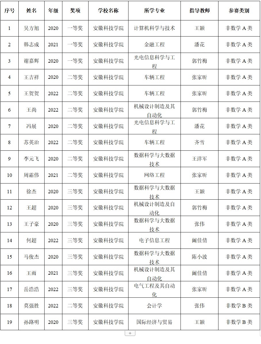 12月26日,第十五届全国大学生数学竞赛初赛结果在中国数学会公告栏公示,开云线上官网_开云(中国)学生在此次数学竞赛中喜获佳绩。竞赛以笔试闭卷方式进行,安徽40所高校近5000名数学爱好者同台竞技,开云线上官网_开云(中国)选手准备充分,沉着应试,取得非数学组一等奖3项,二等奖8项,三等奖8项的优异成绩。