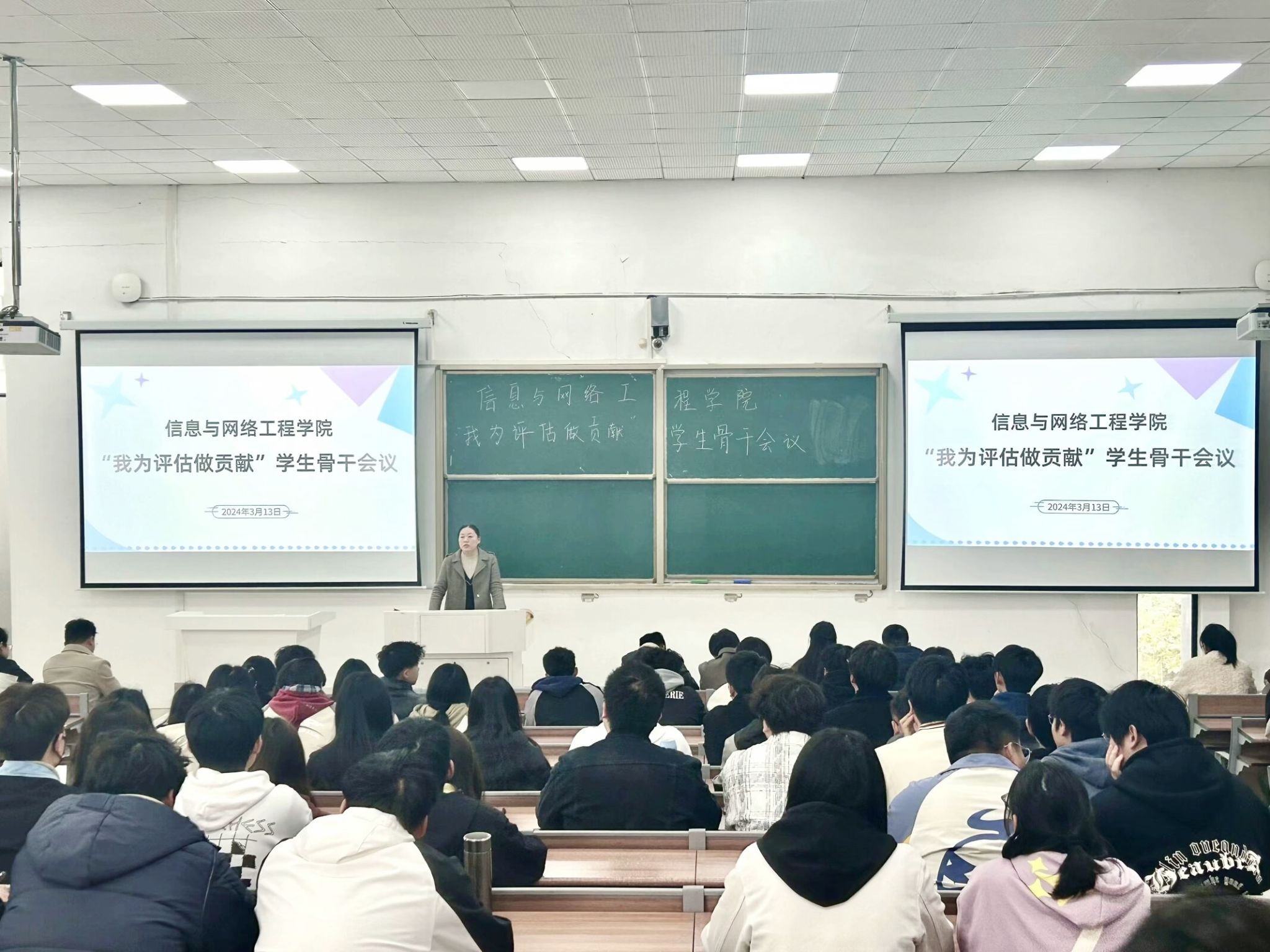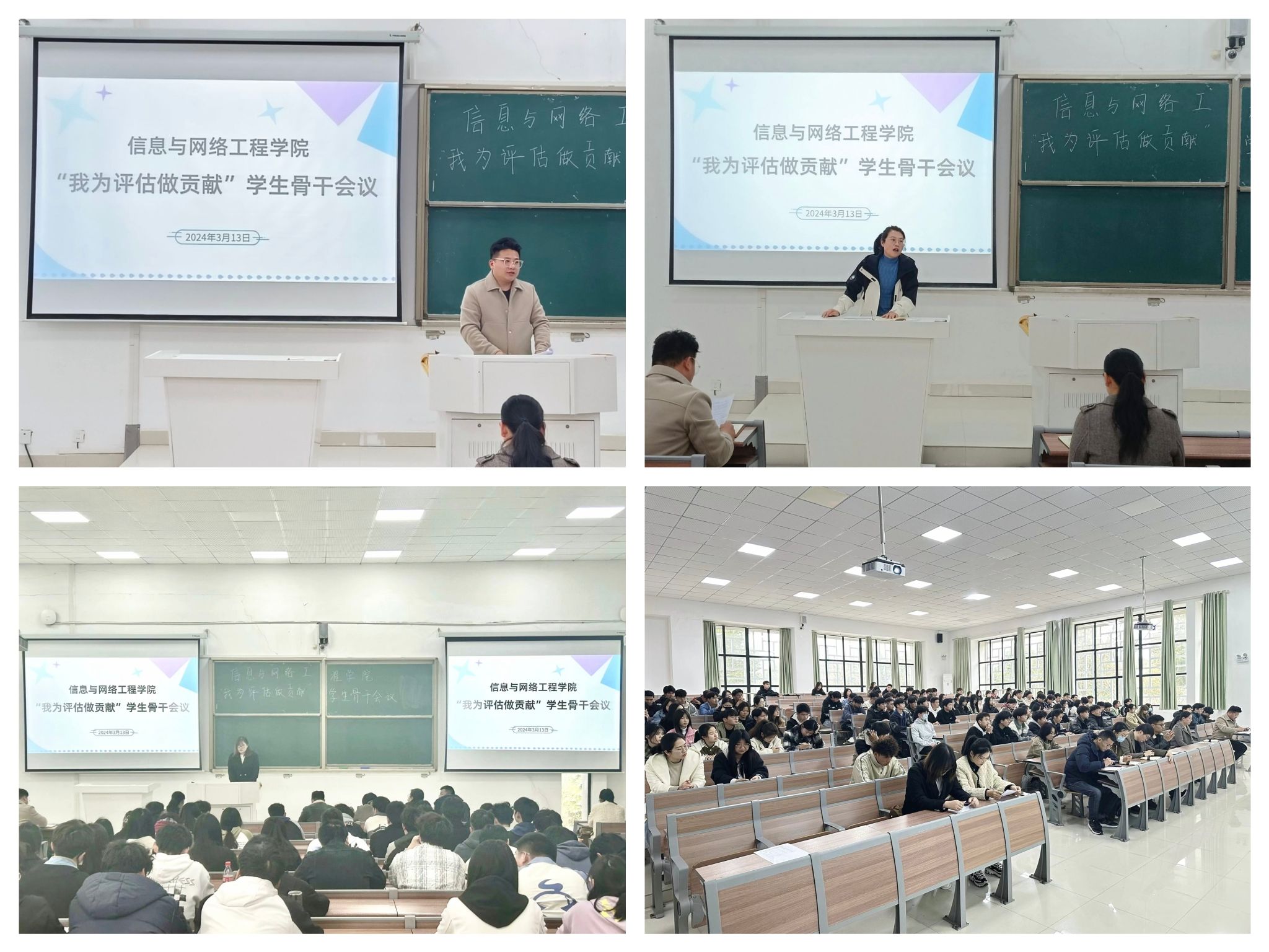 为进一步深化审核评估学习宣传,营造“人人参与评估、人人知晓评估、人人为评估做贡献”的氛围,3月13日下午,信息与网络工程学院在致知楼B111召开“我为评估做贡献” 学生骨干会议。全体辅导员、学生党员、各学生组织学生干部、班级主要学生干部出席会议,会议由党委副书记韦乃学主持。