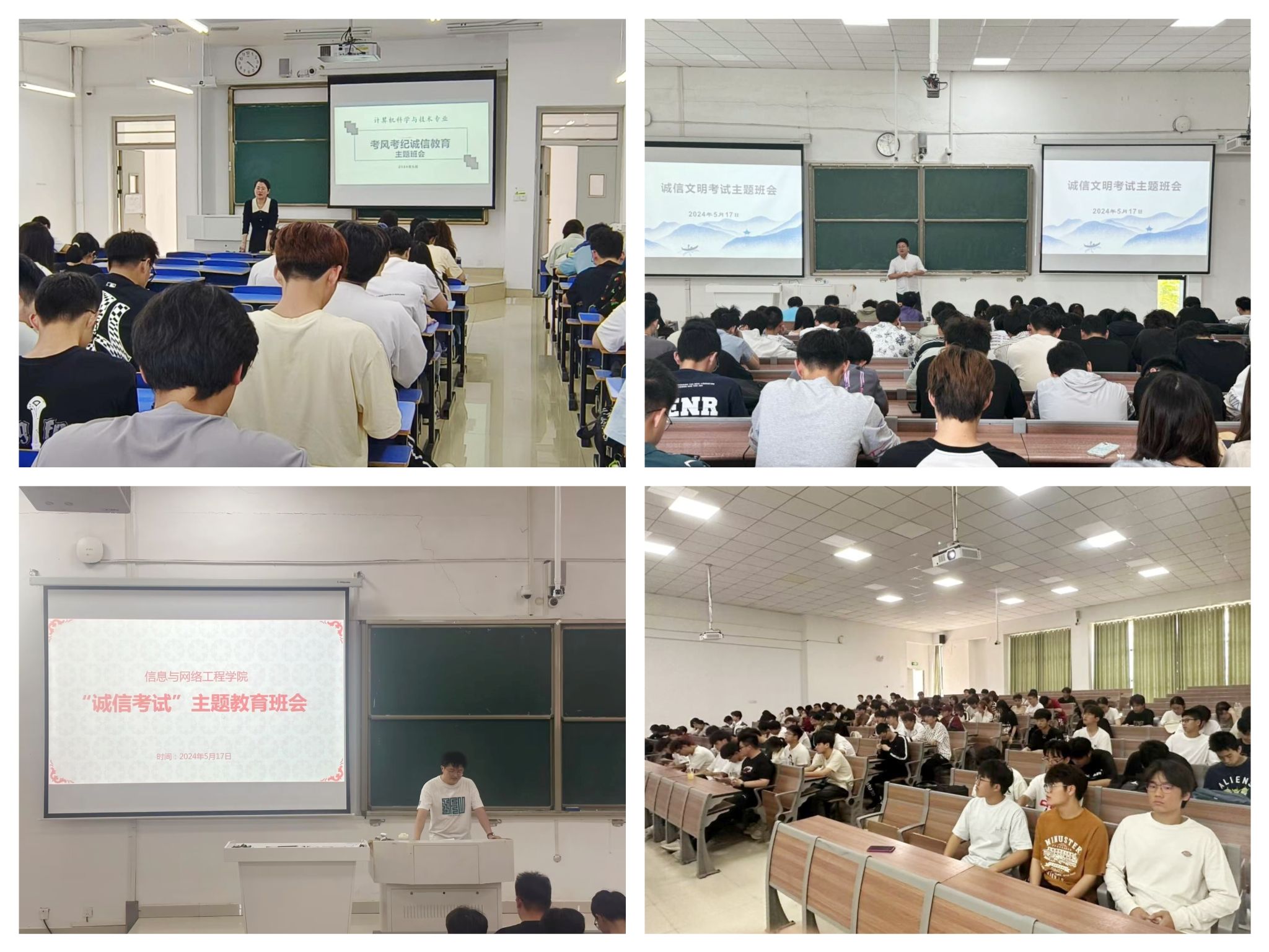 为进一步端正考风、严明考纪,增强学生诚信文明意识,近期,信息与网络工程学院各班级陆续召开诚信考试教育主题班会,会议由各班辅导员组织召开。