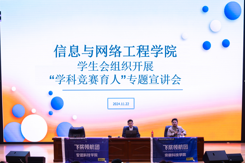 为提高学生干部队伍的学科竞赛能力,强化学生干部的创新意识。11月22日晚,信息与网络工程学院学生会在东辅楼报告厅组织开展“学科竞赛育人”专题宣讲会,学院学生会指导老师崔北坤、百度飞桨领航团负责人宋宁出席了本次宣讲会,学院2024级班级科创委员、学生会全体学生干部参加本次会议,会议由崔北坤主持。