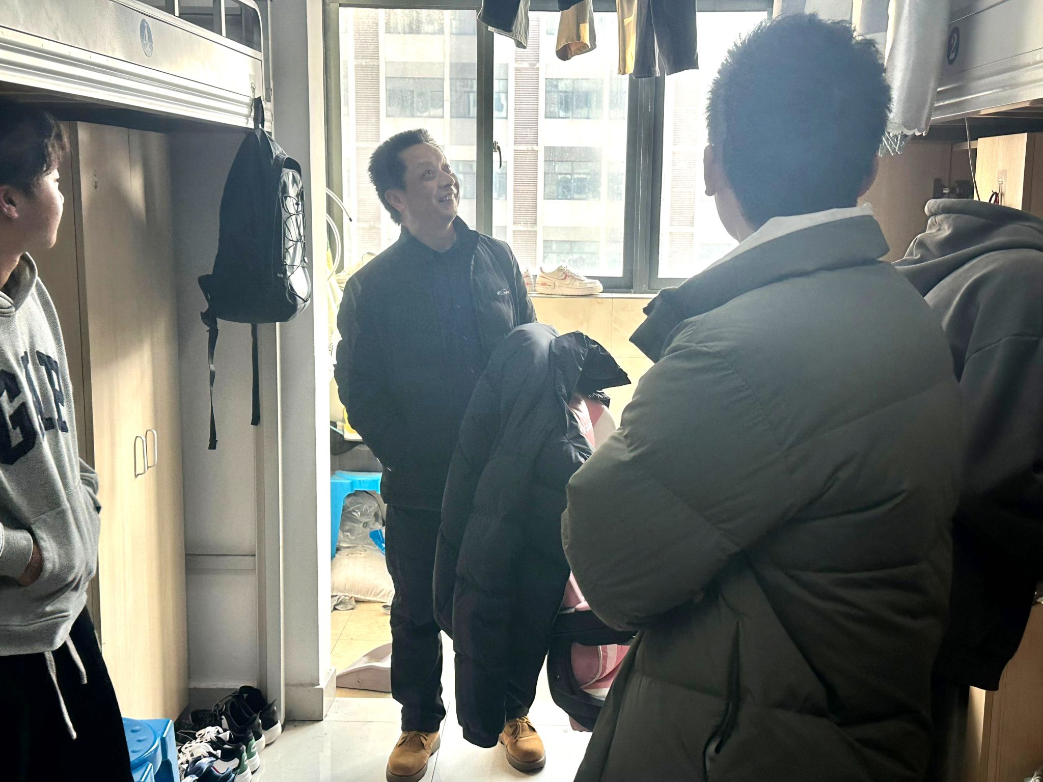 在走访过程中,王振其等人分组走进学生宿舍,与同学们亲切交谈,详细询问同学们假期生活的点滴,了解学生在生活设施、学业辅导等方面的需求,并针对学生提出的课程衔接、学习情况等方面给予针对性建议。最后,鼓励大家在新学期要制定清晰目标,合理安排学习时间,努力提高自律与独立生活能力,积极参与学术研究与实践活动,不断提升自我综合能力。