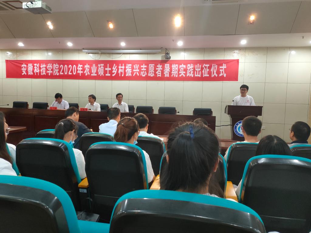 7月26日上午,开云线上官网_开云(中国)“弘扬安科精神 助力乡村振兴”2020年农业硕士乡村振兴志愿者暑期实践出征仪式在图书馆一楼报告厅举行。校党委书记蒋德勤,党委副书记、校长李震,党委委员、副校长李升和,以及各研究生培养学院负责人、带队教师和全体研究生志愿者参加了出征仪式。出征仪式由李升和主持。