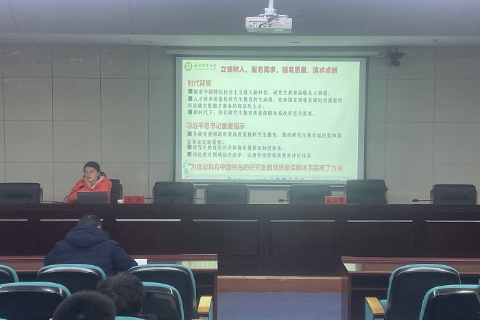 安徽农业大学党委研究生工作部、研究生院综合事务办周玲主任以《落实立德树人根本任务,做好新时代研究生导师》为题,立足当今研究生教育现状,介绍了研究生教育的定位和研究生学习特点,明确了新时代背景下研究生导师的职责与要求,分享了导师能力建设制度与方法思考。周玲主任认为研究生教育应在培养创新人才、提高创新能力、提升导师队伍水平和加快培养高层次人才上下功夫。研究生具有学习方式多元化、自主性强的特点,除了学术科研创新能力外也需要具备合作、沟通、时间管理、健康管理等方面的能力,以面对较大的学业、情感、同行、社会和就业等带来的压力。导师需要密切关注研究生的心理变化以及情绪情感状态,及时给予研究生相应的指导和帮助。